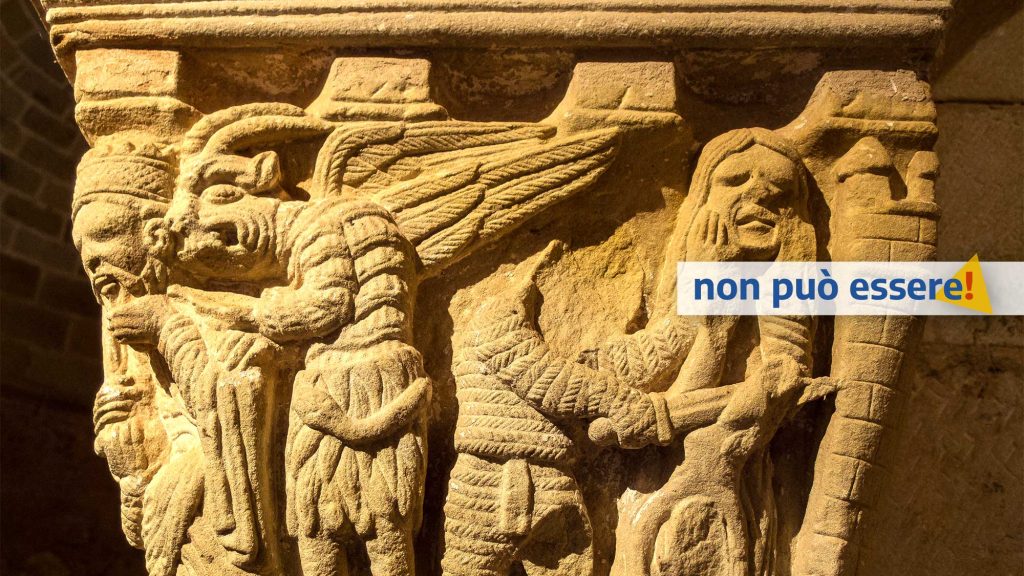 L’inconsueto, l’illogico, l’inverosimile in: "Erode tentato dal Demonio", XII secolo, capitello nel monastero di S. Juan de Duero, Soria (Spagna). (Ogni riferimento all'attualità è puramente casuale)
