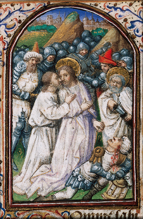 In questa miniatura di Jean Fouquet, si mostra che cosa voglia dire amare il nemico. Fa bene al cuore vedere Gesù che tiene in mano l’orecchio di Malco per guarirlo, ma pure vedere Pietro che ascolta il Signore e rinfodera la spada. Pensiamoci anche noi, nella prossima Giornata mondiale della pace.