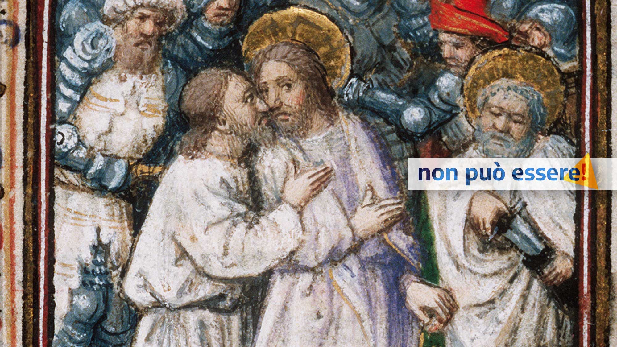 Nella notte degli abbandoni, quando Gesù viene consegnato da Giuda ai soldati, qualche resistenza c’è stata da parte dei suoi e uno di loro ha anche messo mano alla spada, staccando un orecchio al servo del sommo sacerdote. Ma… non può essere che due evangelisti – Luca e Giovanni – si mettano addirittura a precisare quale fosse l’orecchio tagliato (il destro)! Oltretutto, senza calcolare che questo particolare avrebbe messo in difficoltà gli artisti, a cui non è chiaro il posizionamento di Pietro rispetto al ferito.